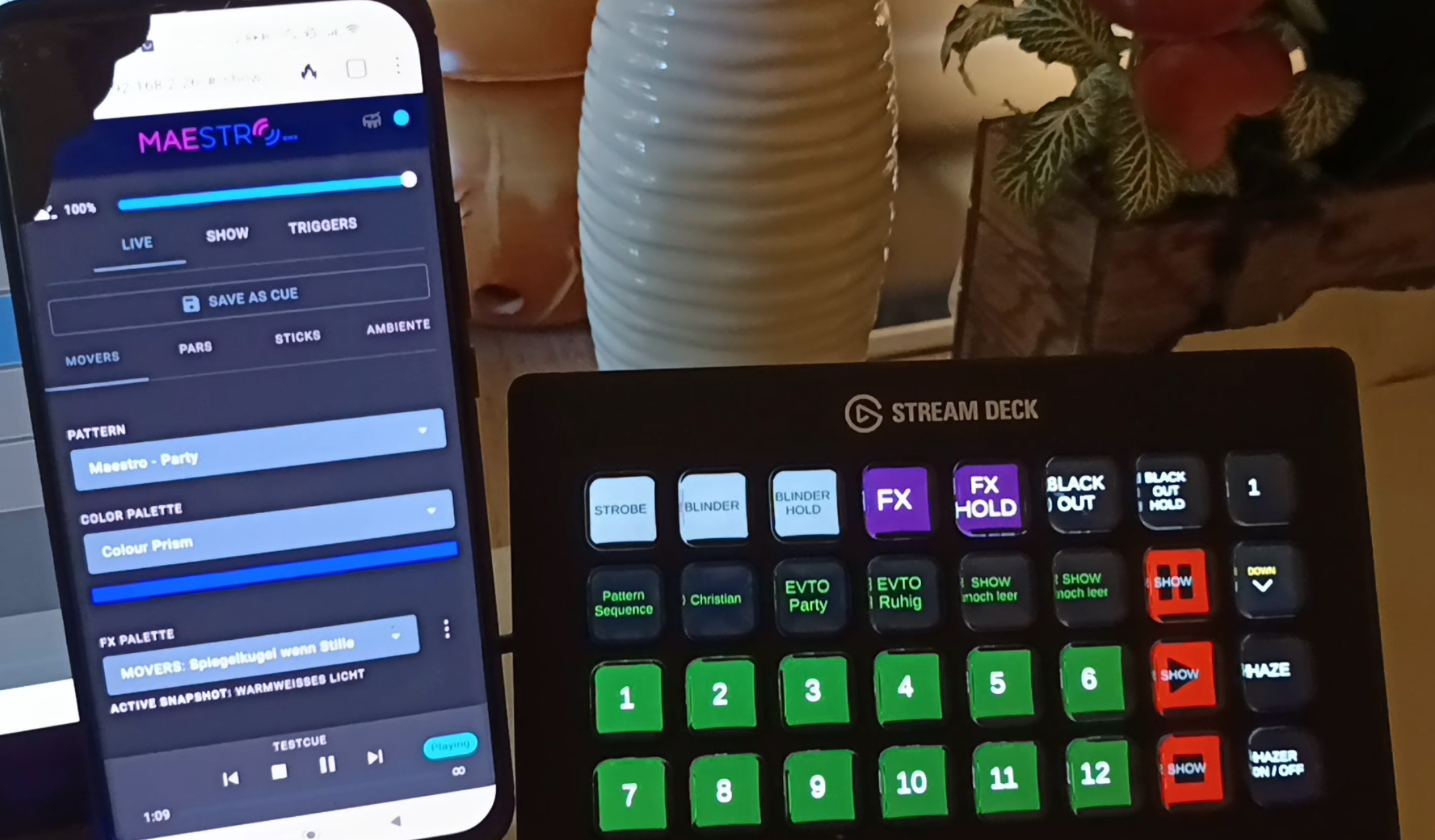 Additionally you can send 2 commands with one button-stroke. First change to the right SHOW and 2nd. will select the wanted CUE by No. So you can choose every CUE directly per button.