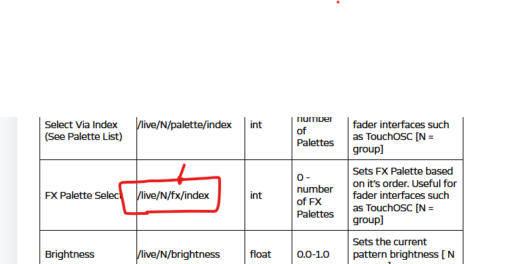 But in Live Show Screen is giving the Path /live/1/fx_palette/index