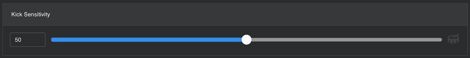 The Kick Sensitivity control is used to calibrate the detection of kick drum-based triggers depending on different styles of music. Here are some ranges: