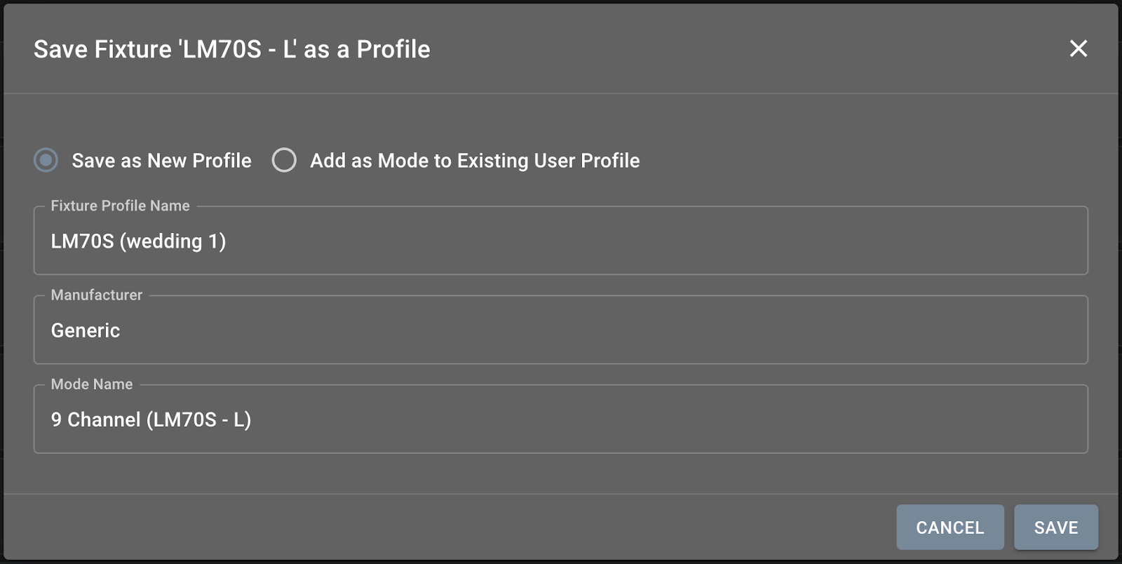 You have the option to save the specific fixture in the patcher as either a new fixture profile or to add it as a new channel mode to an existing profile.