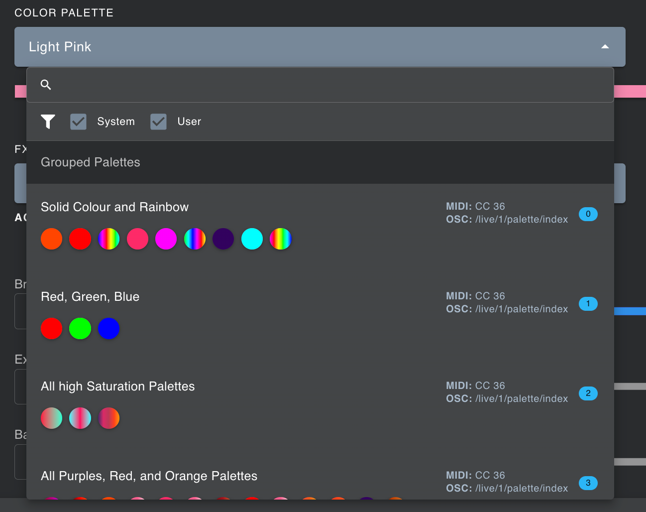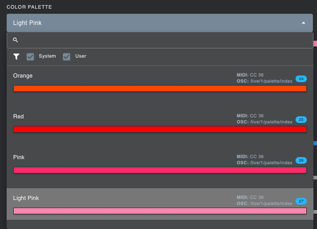 Individual Palettes can be made up of either a single color or a color gradient made up of multiple color stops.