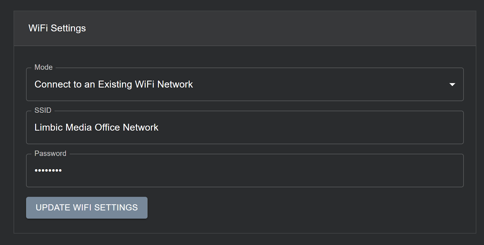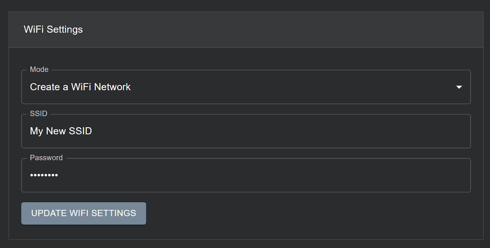 Within the WiFi Settings, users have the option to switch between two distinct modes: “Create a WiFi Network” and “Connect to an Existing WiFi Network”, such as your local router.