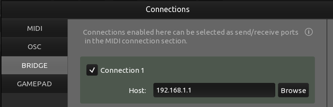 To connect MaestroDMX to Touch OSC, press the link icon