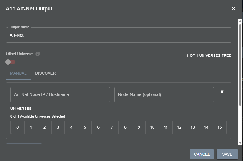 Users can also easily find and connect to Art-Net Nodes using Discover